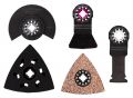 5-delige multitool renovatieset met starlock aansluiting. TMA047: Bi-metalen invalzaagblad, met afgeronde zaagkant voor nauwkeuriger en sneller invallen in hout en metaal. (bestelnummer: B-64814) TMA049: HCS segmentzaagblad voor hout. Uitermate geschikt voor: zachthout. Geschikt voor: hardhout, tri-/multiplex, parket, meubelpanelen, zacht plastic. (Bestelnummer: B-64836) TMA065: Schraper rigide 52 mm. Uitermate geschikt voor: harde tapijtresten. (Bestelnummer: B-64989) TMA073: HM-Riff schuurzool, met zeer lange levensduur. Uitermate geschikt voor: tegelspecie/-lijm. Geschikt voor: zachthout, hardhout, zachte tapijtresten/-lijm, harde tapijtresten/-lijm. (Bestelnummer: B-65062) TMA078: Driehoek steunzool met velcro (klittenband) voor Makita multitools. (Bestelnummer: B-65115)