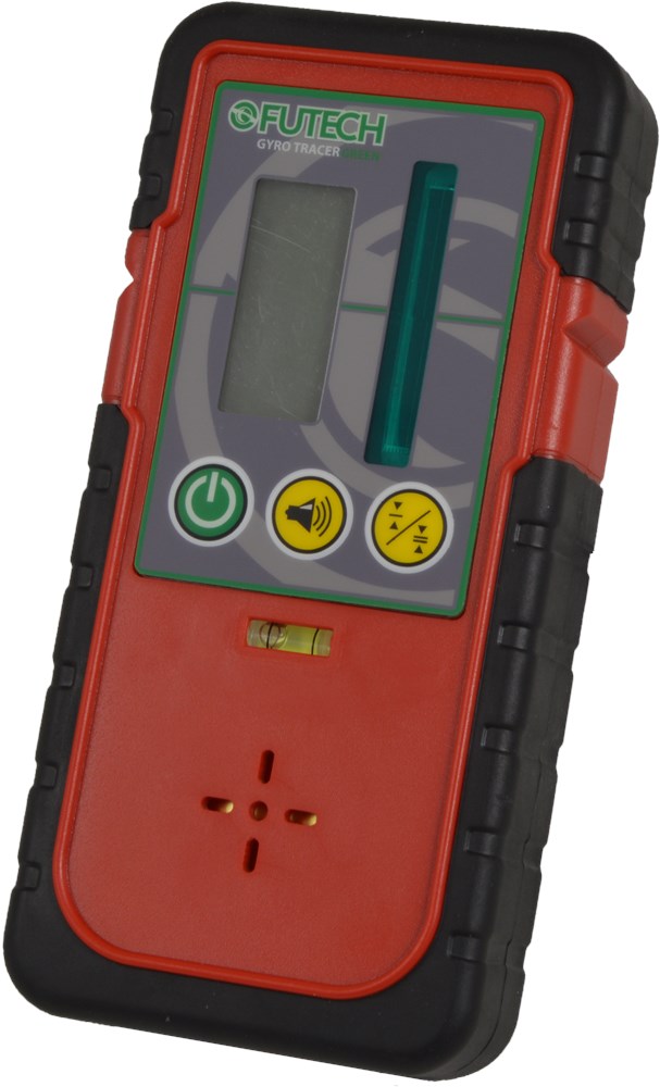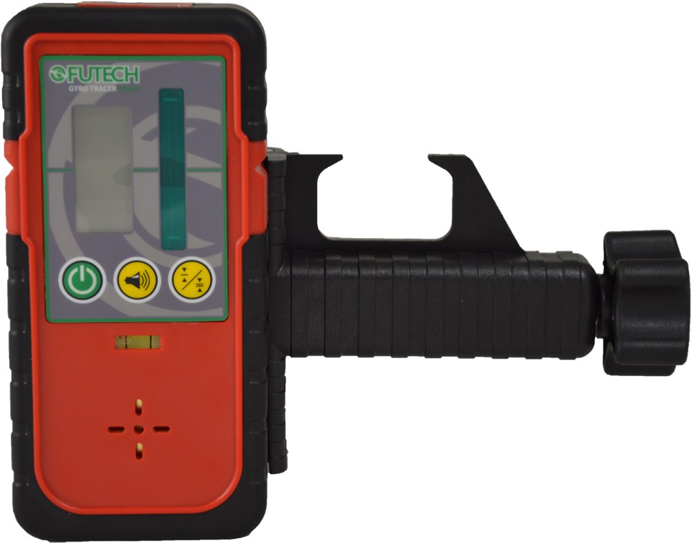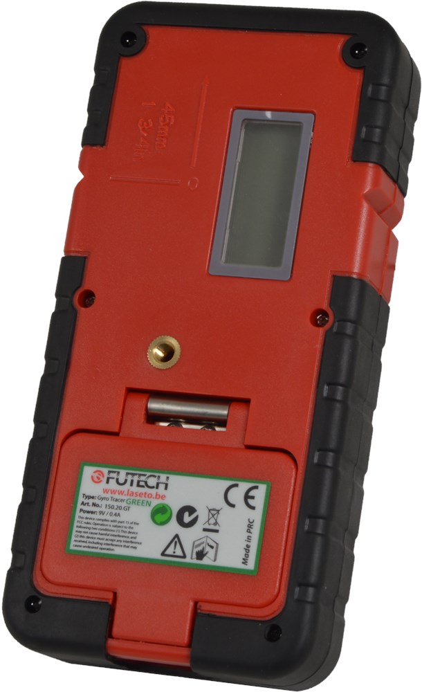 Contacteer onsOntvanger voor groene rotatielasers met bereik van 200m. Ontvangstveld van 45mm en aanduidingen op LCD display (op voor- en achterzijde van het toestel) en geluidsignalen. Geleverd met klem.