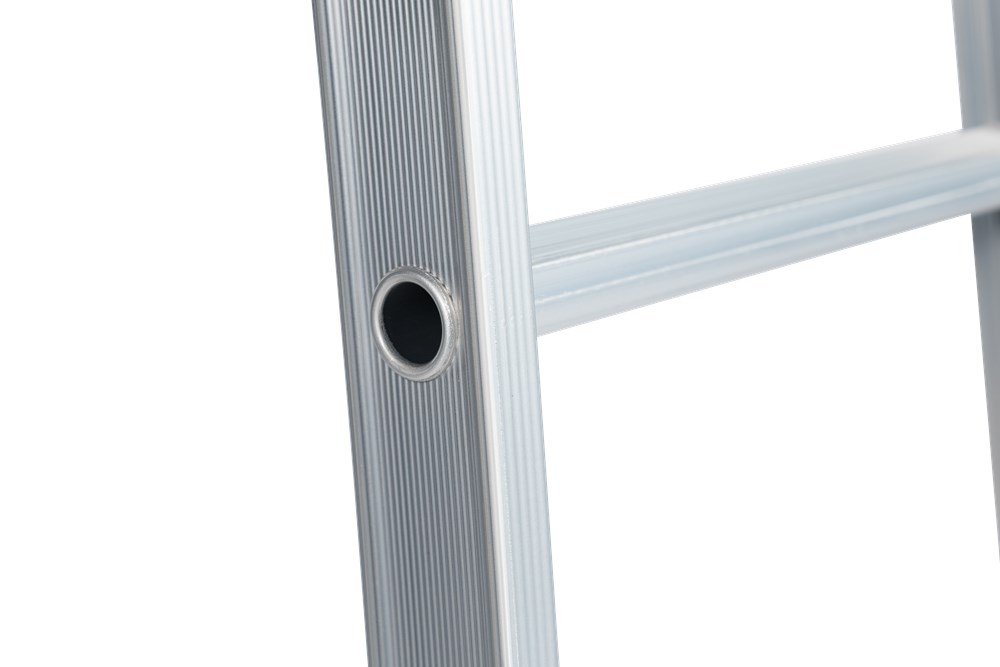De ladder is ontworpen met veiligheid en efficiëntie als prioriteiten en is voorzien van antislip sporten voor een stevige grip en stabiele geleiders voor veilig werken op grotere hoogtes. De ladder heeft een indrukwekkend draagvermogen, wat vertrouwen geeft tijdens het gebruik. Ondanks zijn stevige constructie is de ladder gemakkelijk op te bergen dankzij de compacte opberglengte.