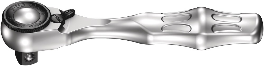 De Wera Zyklop Mini 3 ratel voor 1/4"-doppen. Eenvoudig te bedienen, zelfs met 1 hand op lastige schroeflocaties. Smeedijzeren uitvoering. Fijnvertand mechaniek (60 tanden) voor een kleine terughaalhoek van 6° voor nauwkeurig werken. Het geribde wieltje maakt snel schroeven op lastige schroeflocaties mogelijk, als geen ratel kan worden gebruikt. Eenvoudige links/rechts-omschakeling.