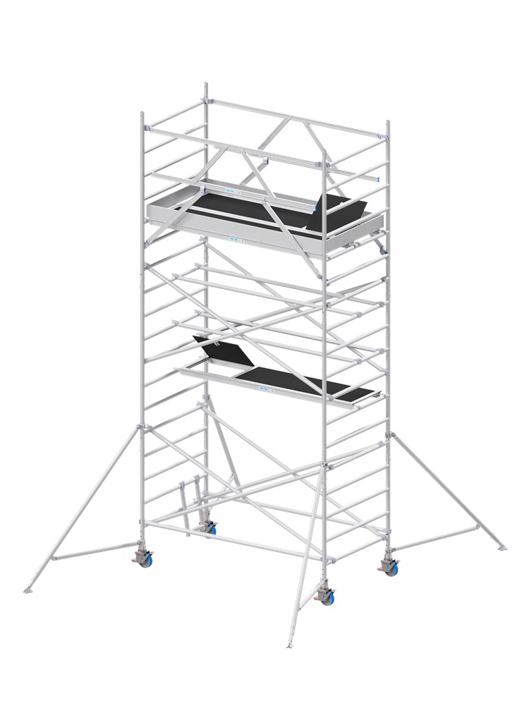 ✅ Veilige op- en afbouw – uitgerust met één set 4S-voorloopleuningen voor 360° bescherming tijdens montage en demontage. Voor de rest van de configuratie worden horizontale schoren gebruikt.