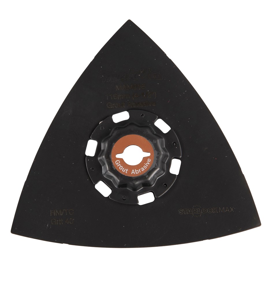 Contacteer onsMultitoolbladen met Starlock Max-bevestiging. Ontworpen voor het verwijderen van specie en voor schurende klussen. De bruine accentkleur maakt het gemakkelijker om de bladen te onderscheiden van bladen die voor andere materialen zijn bedoeld. De ruime keuze aan accessoires voor multitools biedt bladen met diverse breedtes, vormen en voor diverse materialen. De juiste set accessoires maakt het gereedschap efficiënt en veilig om mee te werken. Schuurplaat met carbide korrels voor ruwe verwijderingstoepassingen. Voor mortel, glasvezel, tegellijm