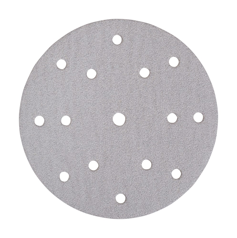 Contacteer onsSchuurschijven van 150 mm voor verf en lak met 15 geperforeerde gaten en verschillende korrels. Het getal op de schijf geeft de grofheid weer. Hoe lager het getal, hoe ruwer de schijf.