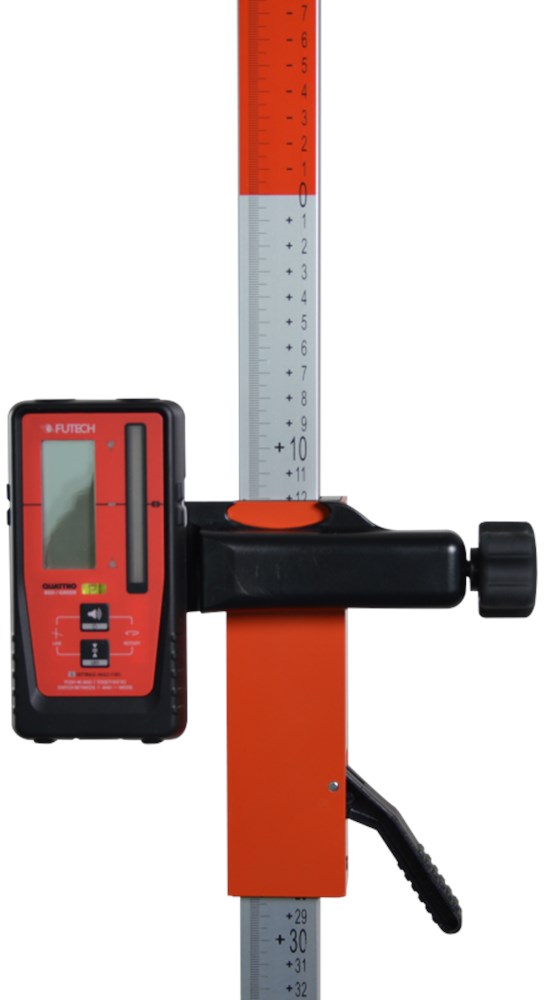 Contacteer onsUitschuifbare meetlat tot 240cm met cm/mm aanduiding aan de voorkant en snelklem om de hoogte van de ontvanger snel en eenvoudig te kunnen blokkeren.