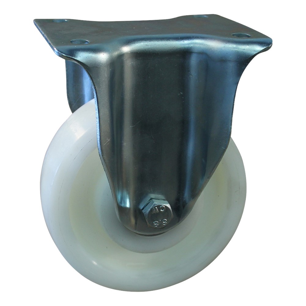 Transportwiel (bok) met plaatbevestiging met stalen gaffel, naturel PA (of PP) wiel