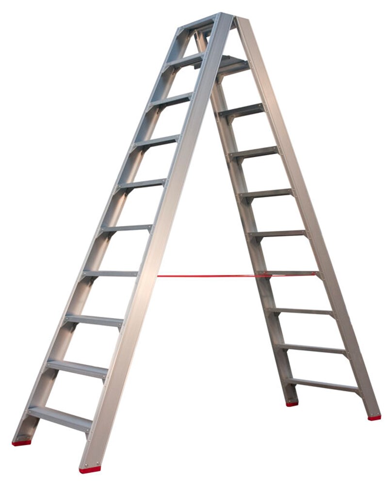Contacteer onsOerdegelijke industrietrap met 4 schetsplaten en 12(!) popnagels in iedere trede. Het geanodiseerd aluminium is vuilafstotend en geeft niet af (geen vuile handen). De 10 cm diepe treden en het grote bordes zorgen voor een comfortabele werkplek. Bij de dubbel oploopbare trap is er een tweede stabordes dat als spreidbeveiliging fungeert. Vanaf 2x3 treden compleet geleverd inclusief verplichte steunbeugel (ARBO).