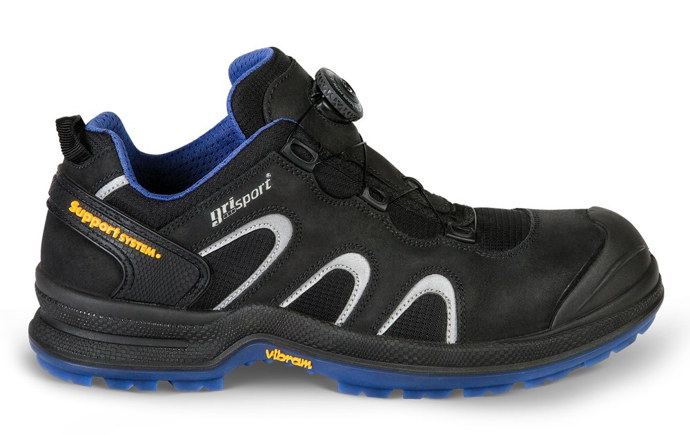 Contacteer onsDeze zwarte werkschoen van het merk Grisport type Bender met veiligheidsklasse S3 heeft een composiet neus en Technical fibers non-metallic tussenzool. Deze werkschoenen beschikken over reflectiestrips en ook over een BOA-sluitingssysteem. Hiermee kan de schoen zeer gemakkelijk strakker en losser gemaakt worden. Deze betrouwbare lage schoen heeft de volgende kenmerken: BOA, metaalvrije tussenzool, overneus, uitneembare inlegzool, SRC. De Grisport Bender bestaat uit de volgende materialen: bovendeel: leer, voering/binnenzijde: Cambrelle®, zool/onderzijde; PU/TPU.