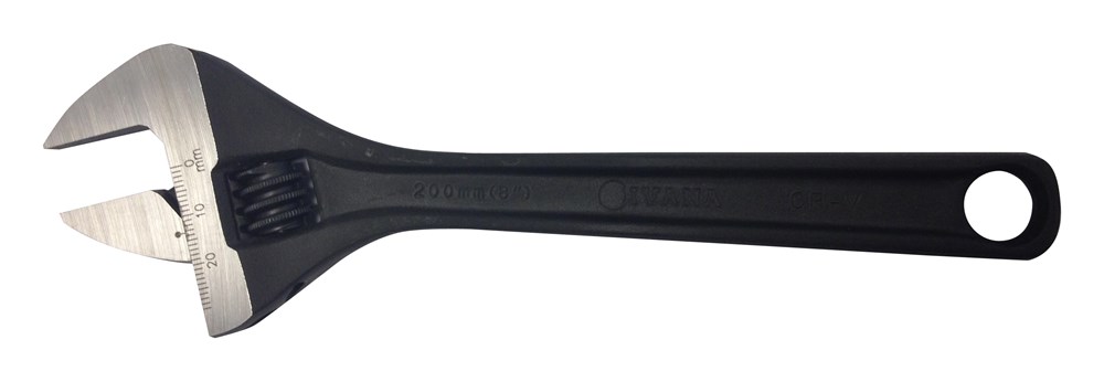 Contacteer onsZweeds model Schroefsleutel uit chroom vanadium staal. Zwart-gefosfateerd met gepolijste kop voorzien van maat-aanduiding in mm/ inches. Comfortabele brede greep