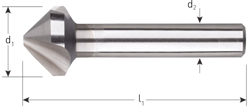 VHM verzinkfrees (volhardmetaal K20), DIN 335-C, cilindrische schacht, 90°, 3 snijkanten, door CBN-geslepen spaangroeven voorzien van zeer scherpe en nauwkeurige snijkanten.