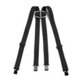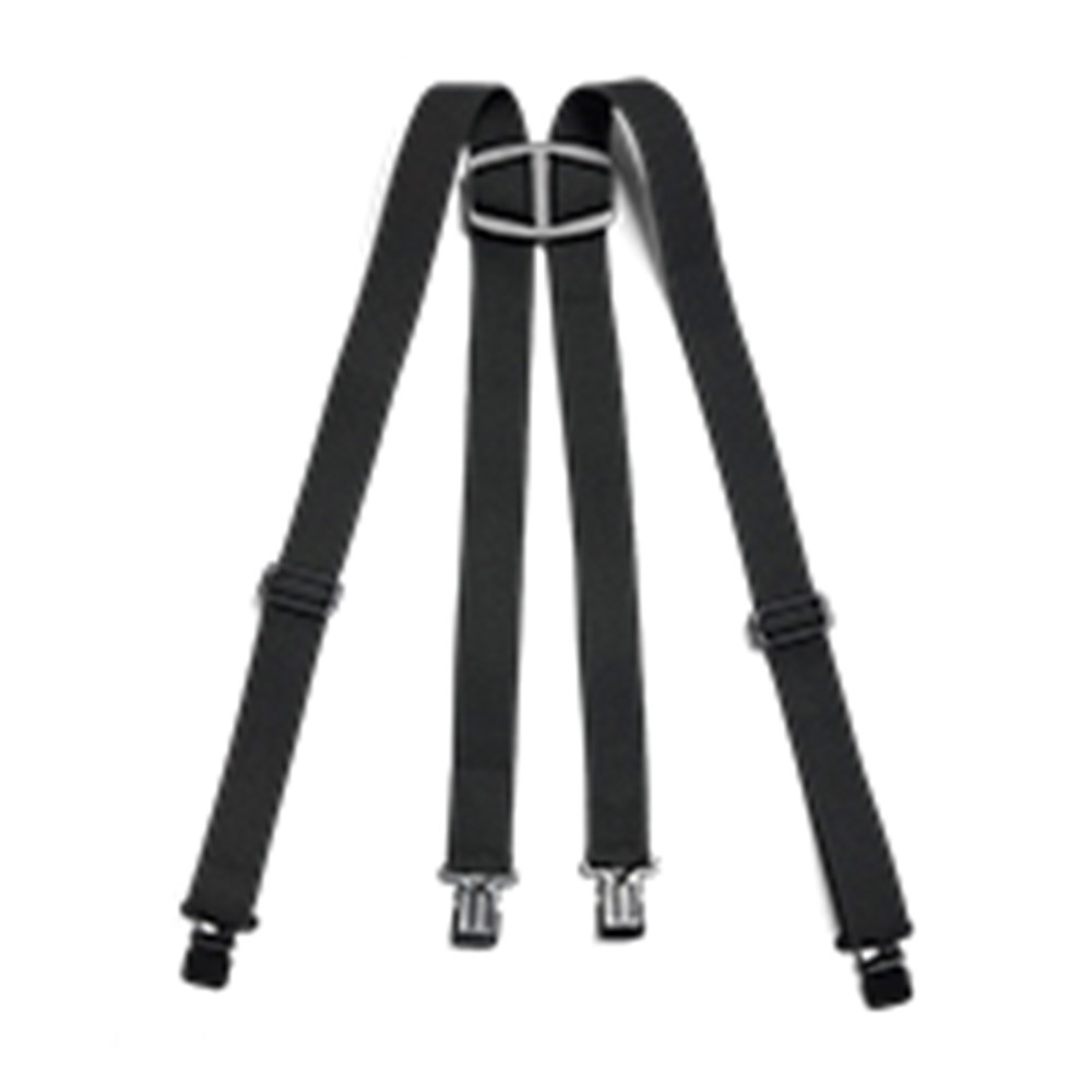 • Vlamvertragende, brede bretels met extra sterke elastiek en robuuste metalen clips.
