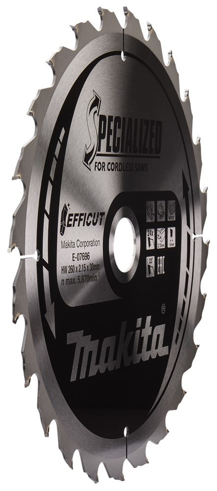Contacteer onsMakita Artikelnummer: E-07705 TCT ZAAGBLAD 260 X 30 MM. 24 T. EFFICUT