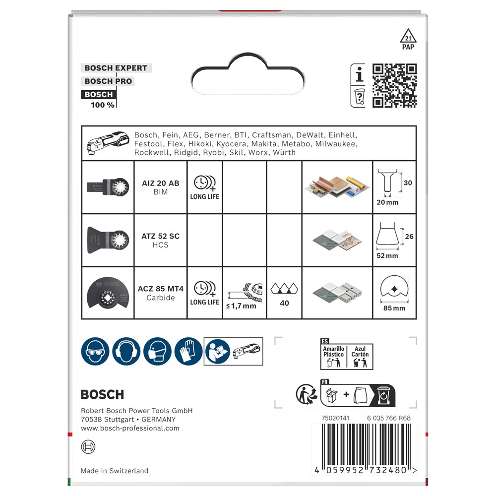 Met de oscillerende multitoolmessen in de Tiling Set kunnen professionele tegelzetters en renovatiebedrijven door de mortel tussen de tegels snijden en tegellijm erachter wegschrapen.