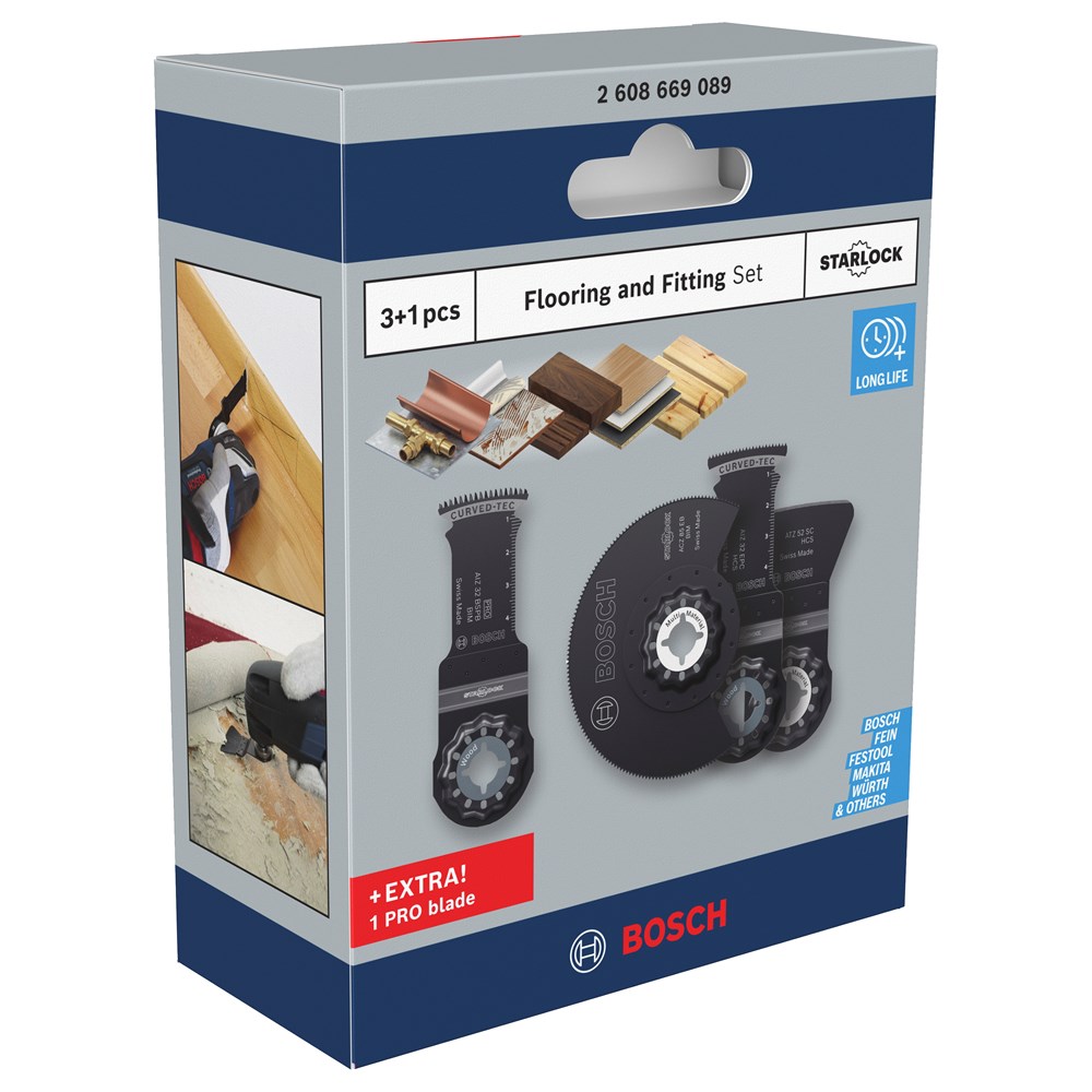 De vloer- en montageset biedt vloerleggers alle oscillerende multitoolbladen die ze nodig hebben om alle standaard vloermaterialen te zagen en oppervlakken voor te bereiden op een nieuwe vloer.