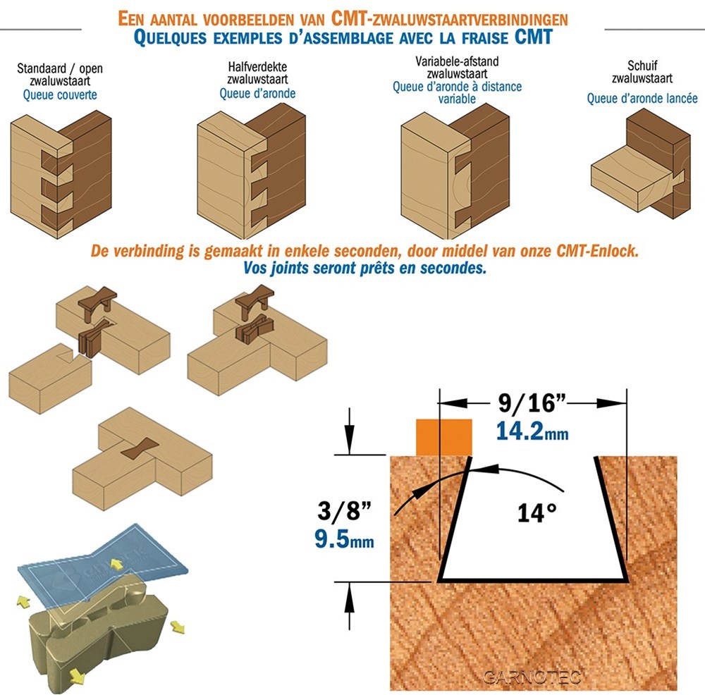 Zwaluwstaartfrees met kogellager, HW